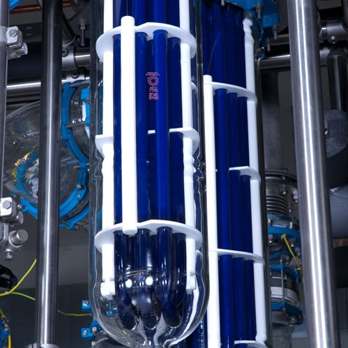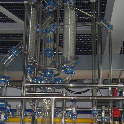 Стеклянные спиральные теплообменники могут работать параллельно для создания большей поверхности теплообмена для лучшей конденсации паров в больших реакторных системах. Они с легкостью подвергаются очистке и допускают работу под давлением до 3 бар.